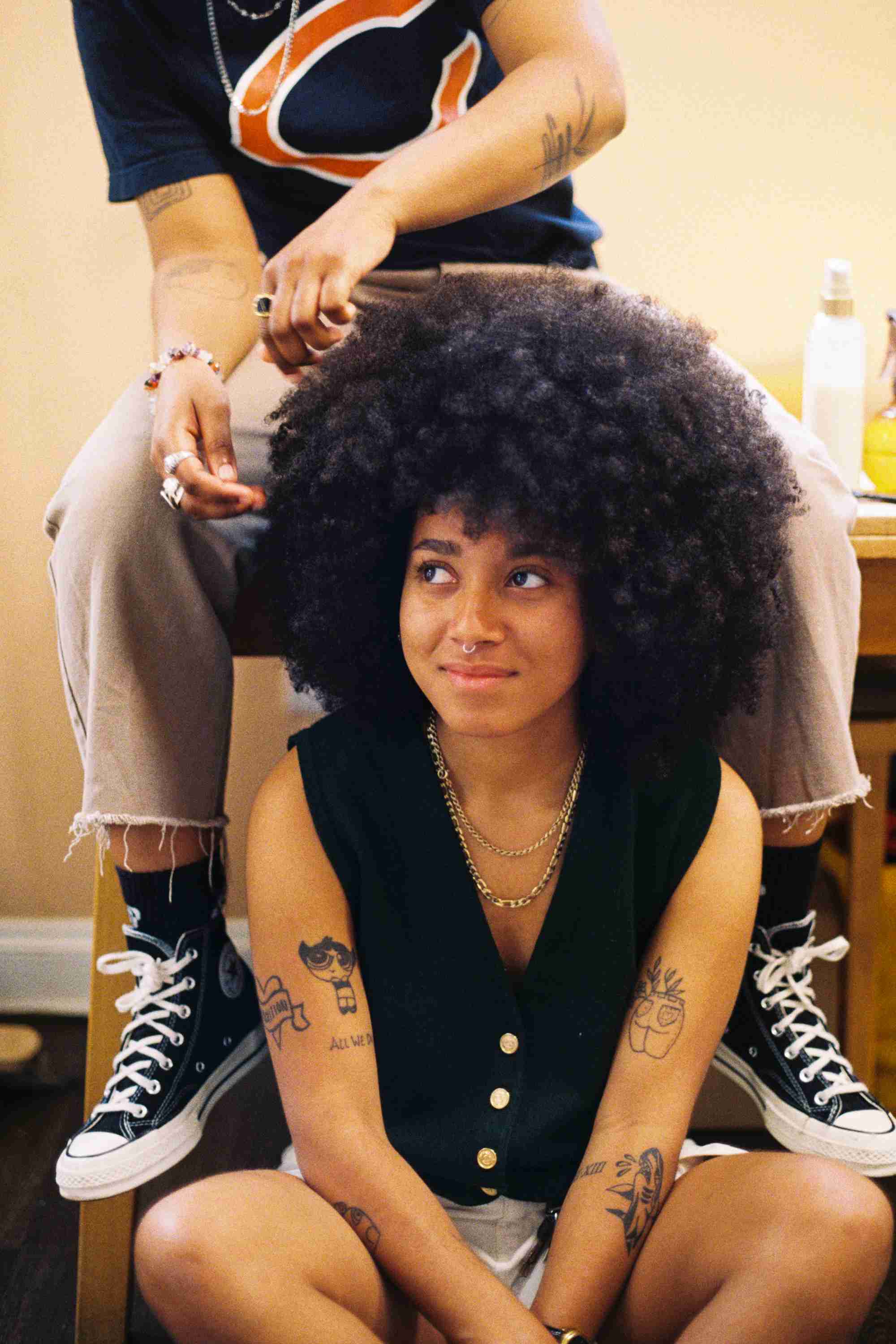 La série s’inscrit dans une histoire où styles, rasages et teintures permettent aux personnes queer de former, subvertir et révéler des identités culturelles, politiques et de genre. Pour celles et ceux qui ne s’alignent pas sur la binarité, une coupe peut devenir un geste essentiel. En mettant en lumière les coupes réalisées à la maison, entre ami·es ou dans des espaces communautaires, Homemade Undercuts célèbre un acte de solidarité joyeux et révolutionnaire, né du désir de nous créer à notre image et selon nos propres conditions.
