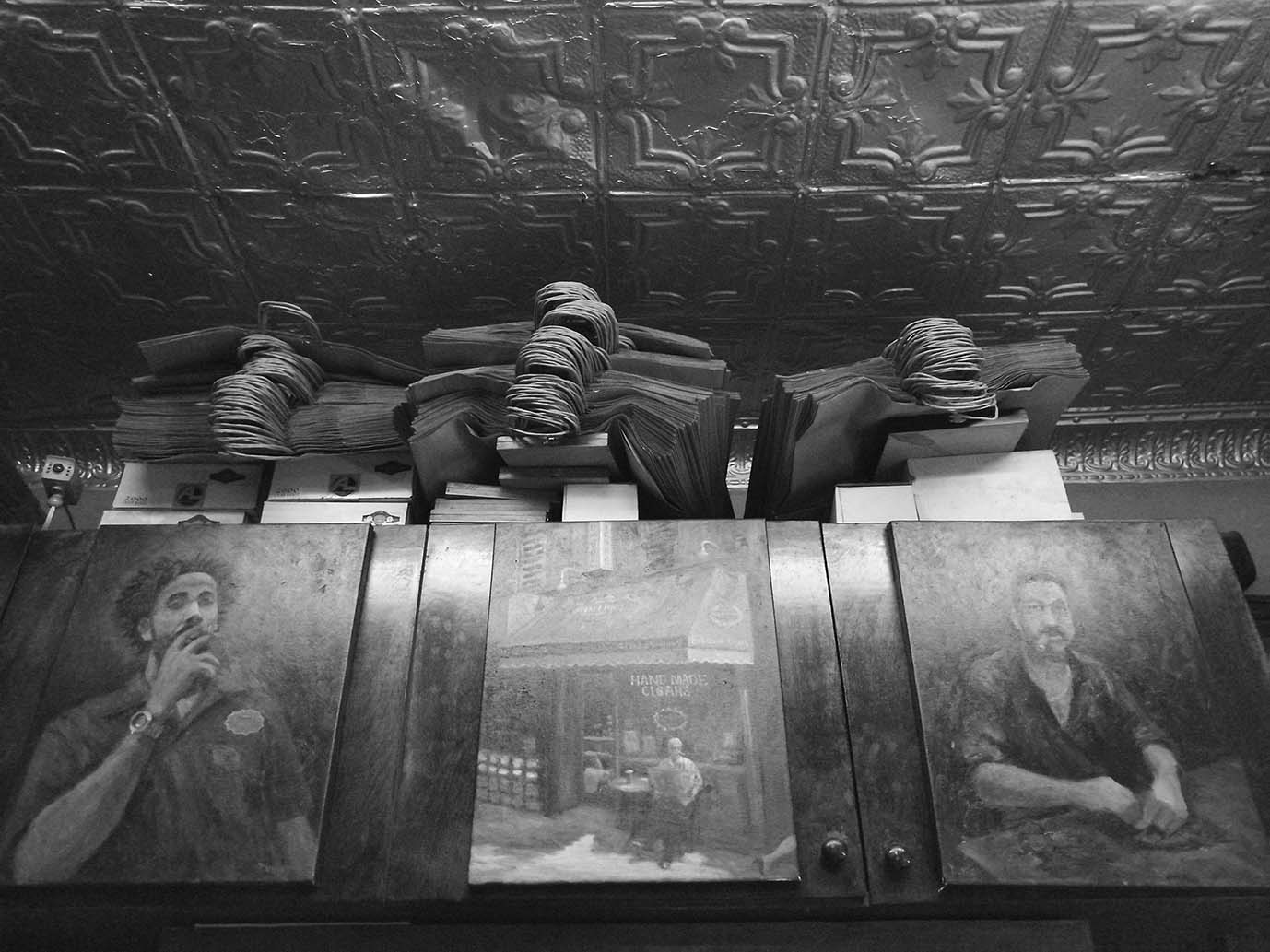 Réalisée à New York dans une boutique enfumée où les clients s’attardent en écoutant de la musique dominicaine et en dégustant ces « hand made cigars », cette série photo noir et blanc évoque un héritage, une présence désincarnée. Les feuilles de cigares y prennent toutes sortes d’apparences, de leur forme originelle à leur disparition dans de laiteuses volutes.