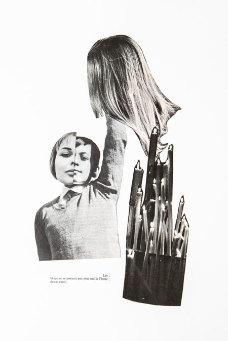 La création est un hasard qui parle aux autres. Un jour d’errance et de désoeuvrement, Karin Crona découvre Pénéla, « la première revue féminine de bibliothèque » publiée en France entre 1967 et 1973. Après s’être procuré plusieurs numéros du magazine, elle se lance dans un travail de découpage et de collage des photographies. Les nouvelles images qu’elle recompose donnent naissance à une mythologie toute personnelle. Pour les réaliser, elle s’inspire de l’écriture automatique et du haïku visuel.