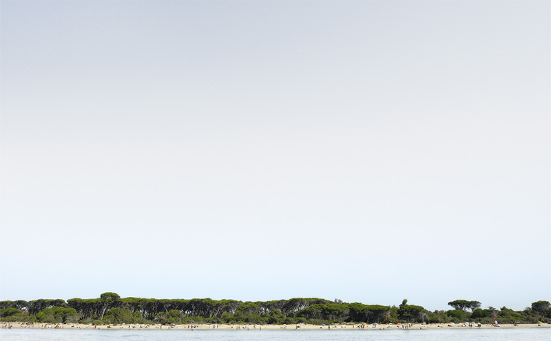 « Landscapes » est une série de photographies prises à partir de la mer représentant de vastes zones côtières de différents endroits du monde. Vues ensemble, les images suggèrent une vue continue de la côte comme un seul paysage étendu, apparemment réel. Pourtant les prises de vue ne sont pas consécutives mais éloignées les unes des autres, prises en différents lieux et centrées sur des sujets variés : murs, arbres, villes, forêts, plages, zones industrielles. Leurs points communs ? Être tous pris de manière frontale et ramenés sur la même ligne d’horizon. Les images peuvent ainsi être déplacées et réorganisées en différentes séquences visuelles formant des paysages sans fin.