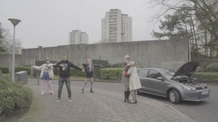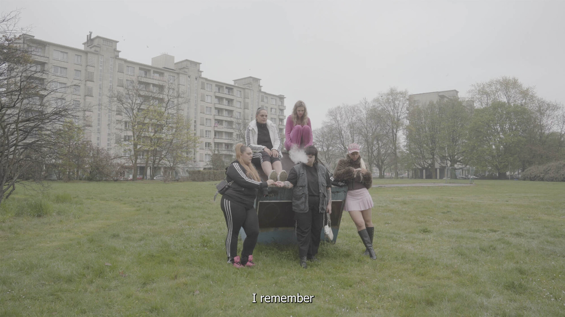 Keczupowo (« ville du ketchup » en français) est le surnom de Włocławek, la ville natale de Natalia Majchrzak, où elle se rend régulièrement depuis son enfance alors qu’elle vit en Belgique. Le film traduit l’ambivalence qui la traverse lorsqu’elle s’y trouve, oscillant entre nostalgie et aliénation. Par la théâtralité, l’artiste met en évidence la subjectivité de ses souvenirs, qu’elle tente de reconstituer dans la région d’Anvers avec des protagonistes incarnés par sa famille et ses ami·es belges. Elle articule ainsi sa vie actuelle et ses origines, interrogeant à la fois son sentiment d’appartenance et l’instabilité de la mémoire. Le détournement des motifs et des objets — tels que le trzepak, structure originellement utilisée pour battre les tapis en Pologne, mais dans ses propres souvenirs, objet central de ses jeux d’enfants — renforce ce dialogue entre passé, présent et avenir tout en devenant un outil de mise à distance.