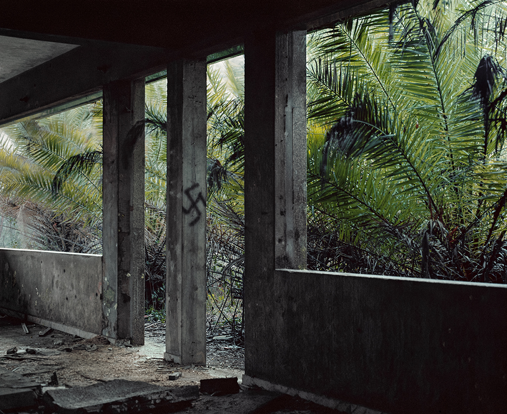 La série Fundação lar do emigrante Português no mundo est un projet photographique et d’investigation toujours en cours, débuté en 2016. Le projet se développe sur les ruines de la Fondation « Foyer de l’Émigré Portugais dans le monde », une ville-satellite projetée dans les années 1980 dans une région forestière au nord du Portugal. L’institution, utopique partiellement construite par un migrant vénézuélien, prétendait accueillir des migrants arrivant au Portugal. Cette initiative privée fut un échec, notamment par manque de financement. Abandonné, le complexe est aujourd’hui vandalisé, occupé par des groupes d’extrême-droite.