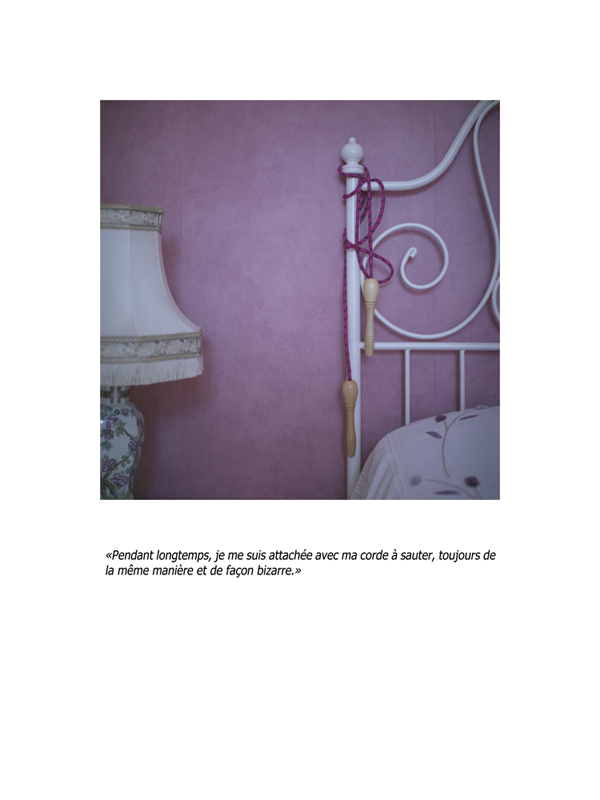 En m’appuyant sur des témoignages, ces photographies sont l’illustration de ces petites choses, en apparence insignifiantes, qui hantent ces histoires faites de silence, de culpabilités et de solitude. Ces simples objets du quotidien auquel on s’est raccroché, qui auraient du alerter, qui aujourd’hui encore dégoutent, mais qui ne s’oublieront jamais. La légende des photographies est un extrait du témoignage ou l’objet est dans son contexte.